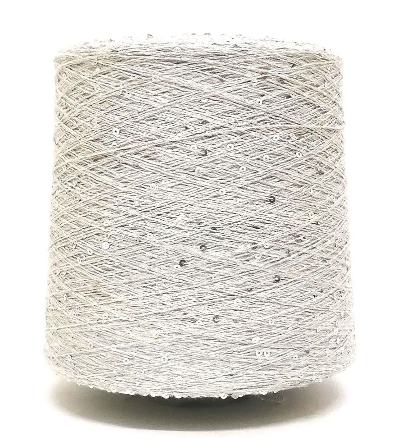 Нежная мягкая хлопковая нить с нанизанными пайетками. Пайетки 3 мм в тон пряжи.